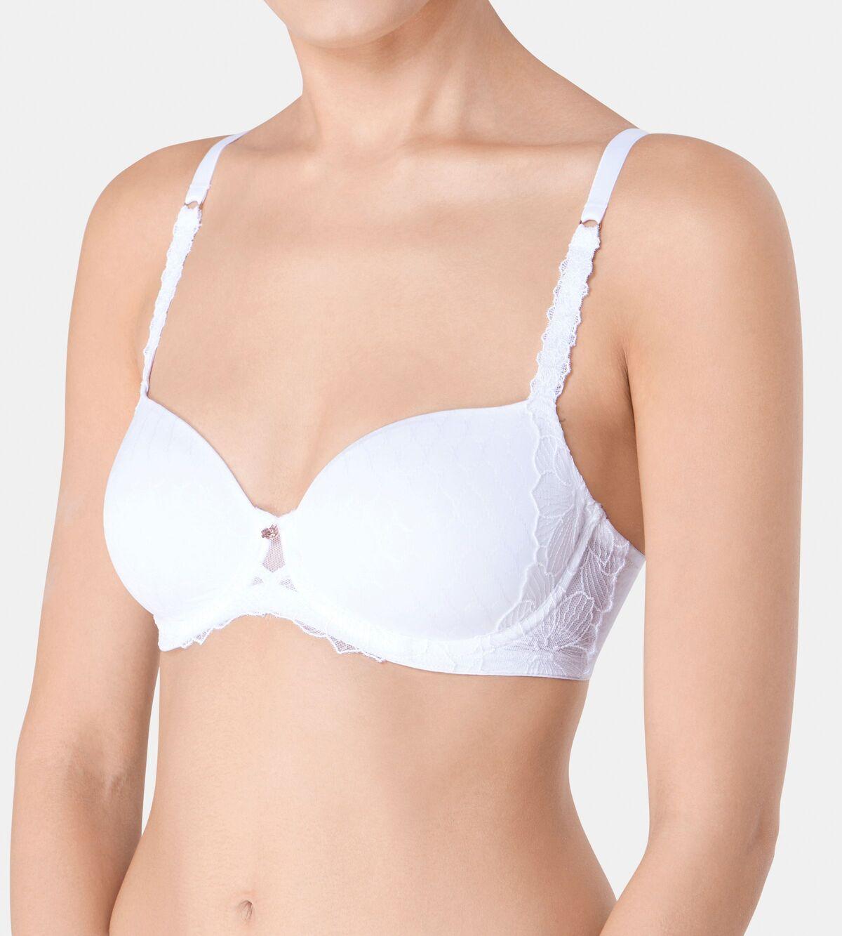 Spacer-Bügel-BH, glatt, mit Jacquard verarbeitet, herrlich bequemer und perfekter Sit, Stickereien an CUP, Steg, und den Seiten zaubern einen luxuriösen, femininen Look, Glatte Seiten und Rückenpartie, dekorierte Träger und ein Pfingsrosenmotiv in Roségold, Ergoline-Bügel: speziell geformte Bügel, die sich dem Körper optimal anpassen, zusätzliche Stabilität bieten und angenehm zu tragen sind.