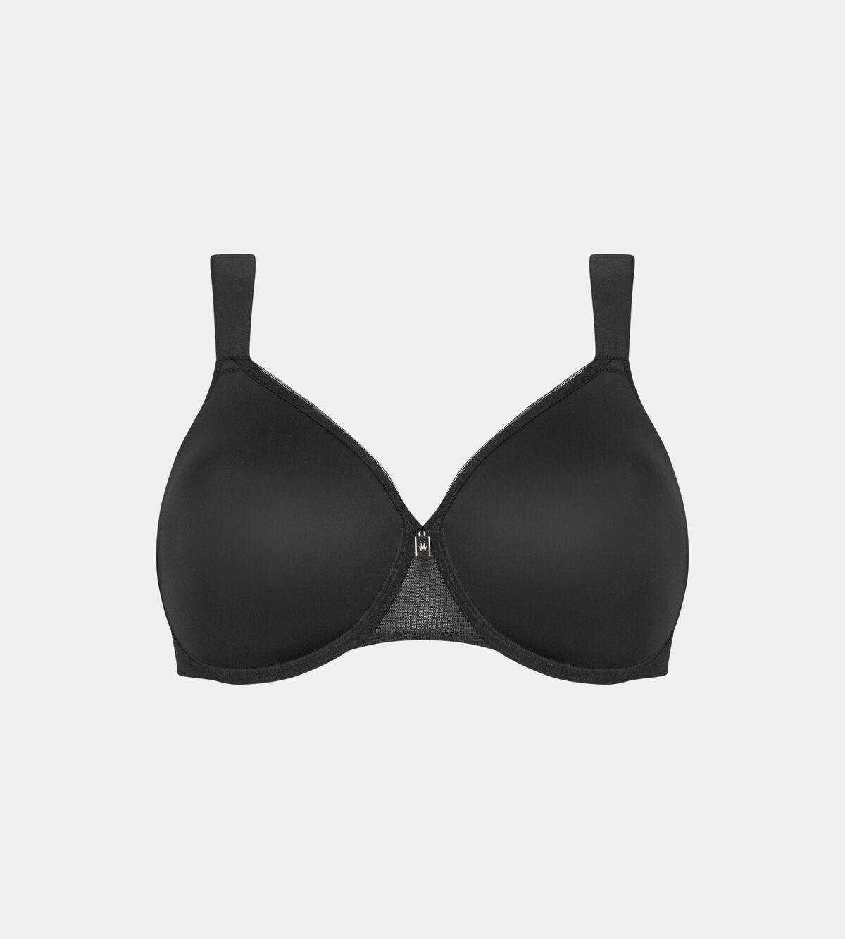 Minimizer mit formenden Bügel, atmungsaktiver Spacer Cup ohne zusätzliches Volumen, breite in der länge verstellbare Träger. Glatte Cups.